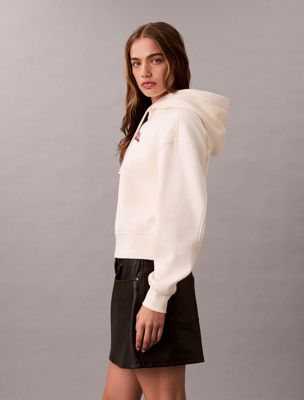 Fleece Script Logo Graphic Cropped Hoodie