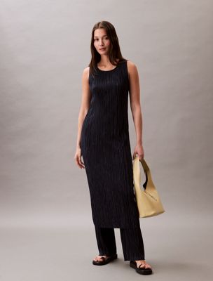 Plisse Sleeveless Midi Dress