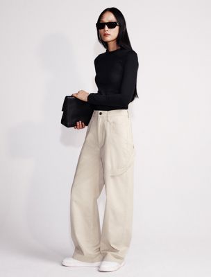 Calvin Luo for Calvin Klein. Inspired by the new year of the snake. A day-to-night celebration of tradition, through a modern lens. These cargo trousers are made from 100% cotton. Relaxed with tapered wide legs in a high rise silhouette.